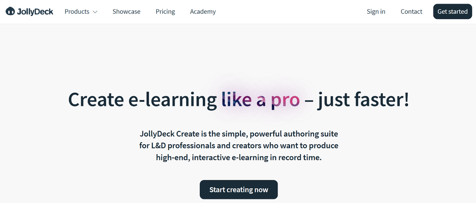 JollyDeck is an eLearning authoring tool built for creating polished, interactive courses from existing documents.