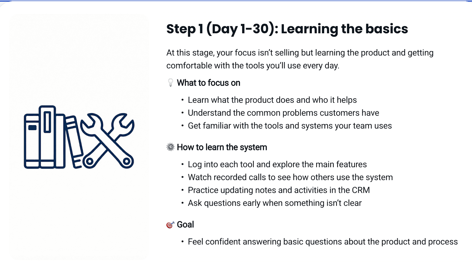 For example, this sales onboarding course uses images, emojis, and bullet points strategically to break down the discussion.