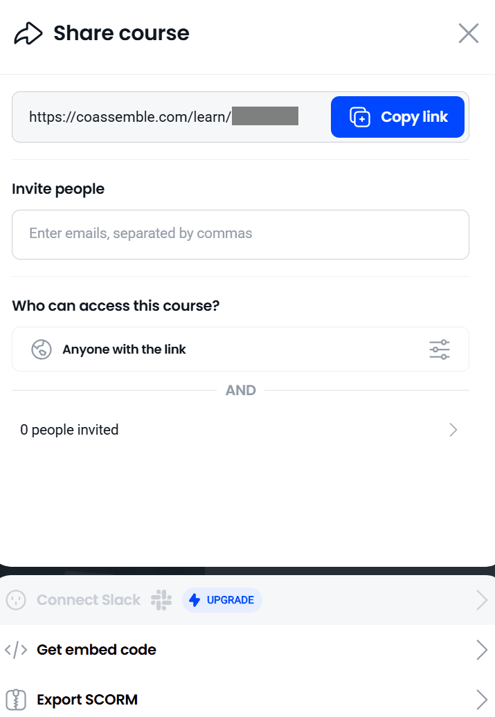 Drop a link. Embed it across your existing tools. Export to your LMS. Push it straight into Slack or Teams. Anywhere you can place a URL, your interactive courses can live.