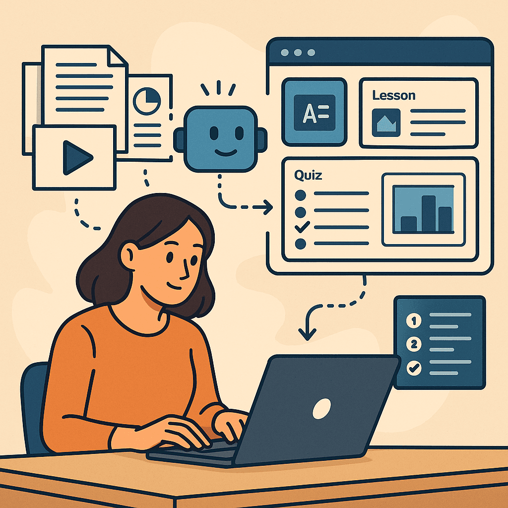 An AI training creator is a tool that uses artificial intelligence to turn your existing documents, slides, or notes into structured online courses with lessons, quizzes, and clear learning objectives.