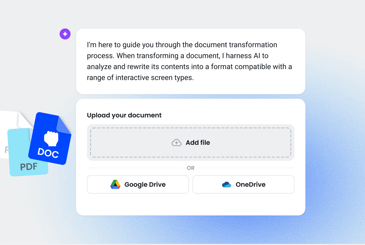 In practice, this means turning your documents into interactive content, creating training that adapts to different devices and learning styles, and updating quickly as work evolves.