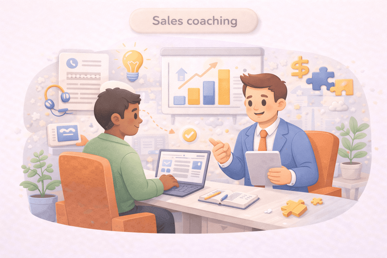 Sales coaching is one-on-one guidance from sales managers to improve specific selling skills. It focuses on personalized feedback after sales calls, pipeline reviews, and deal strategy sessions.