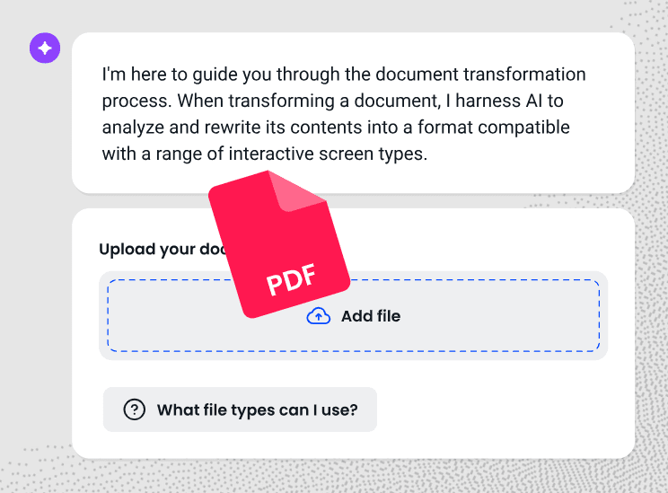 Upload a file (PDF, PowerPoint, Word doc, or internal guide). Coassemble’s AI scans the content, pulls out the key ideas, and reshapes it into a clear learning path with lessons and interactive elements ready to review.