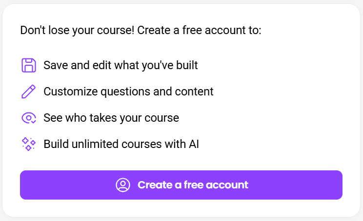 To keep your course, sign up for a free Coassemble account. There’s no credit card, no countdown timer, and no hidden limits. Once saved, your training is live. You can: